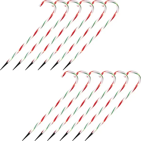 • Our Holiday candy cane stake lights Decor includes 12 Packs of 28 Inches Thick Green Christmas Candy Cane Pathway Maker Outdoor Decoration Light Stake