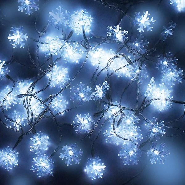 The white snowflake string lights are made of high-quality material, durable, and environmentally friendly. Waterproof for both indoor and outdoor decor. Safety test approved. The waterproof grade is IP44, which allows you to use the lights both indoors and outdoors. However, the power and controller are non-waterproof, please protect them well when using them outdoors. It’s perfect for Christmas tree decorations, wedding party decorations, bedroom decorations, garlands, etc., adding a warm atmosphere to your home or garden!