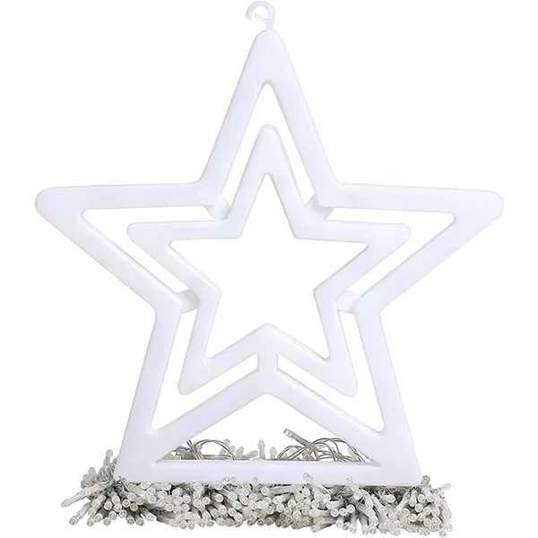 • Our star Christmas Lights String is a 2-in-1 star decoration. The star is about 11.5 inches and the string light is 11.5ft long, the lead wire is 16.4ft long. It will be a beautiful addition to your outdoor decorations. It looks like a star glittering in the night sky. It also comes with ground stakes.