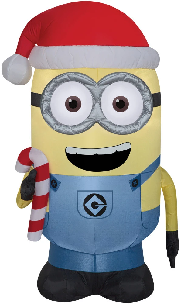 42″ Tall Lighted Air Blown Airblown Minion Dave W/ Candy Cane Inflatable Christmas DespicablesYard Decor Outdoor Decoration