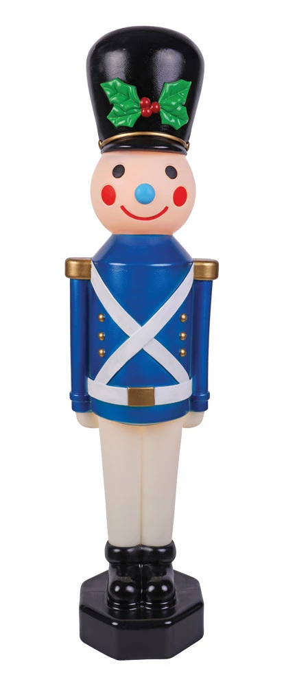 Just the big piece you need for your Christmas display or Santa photo op decoration! Get 2 or more to balance each side! 42-inch blow molded vintage style Soldier lights up! Uses two C7 bulbs. For indoor or outdoor use. Easy assembly. Made of: plastic. Background music is not included. 42.52 in tall x 11.02 in long X 9.45 in wide. Blue.
