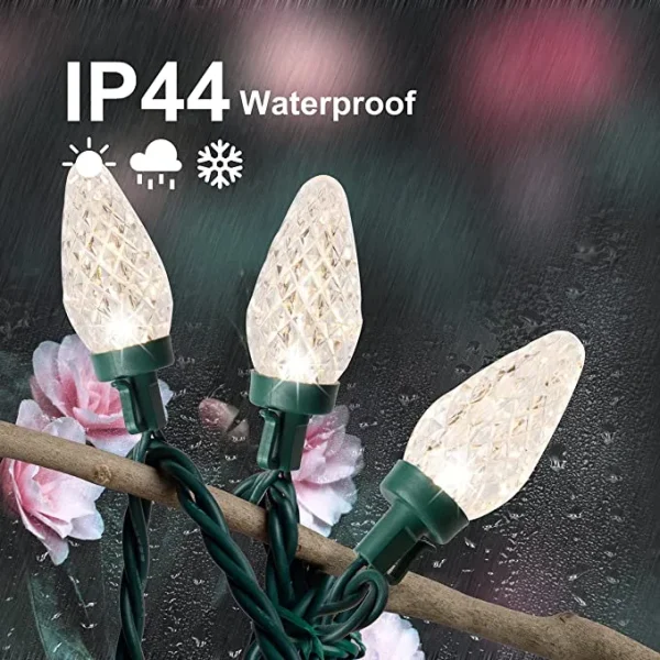 The c9 warm white string lights are able to connect to up to 26 strands (sets) allowing longer lighting coverage and extension based on your desired length. Our LED string lights are waterproof and can protect from splashing water even in rain. A perfect match to use for both outdoor and indoor home party decoration. Perfect Outdoor & Indoor decorations like in the patio, lawn, garden, Yard, bedroom, living room, stairs, windows, etc. Also great for party decor, family gatherings, celebrations, and more. This would add a mesmerizing scene and ambiance anywhere you put this in. The Christmas essence is not complete without giving, our holiday lights can be also given as a gift to friends, and family!