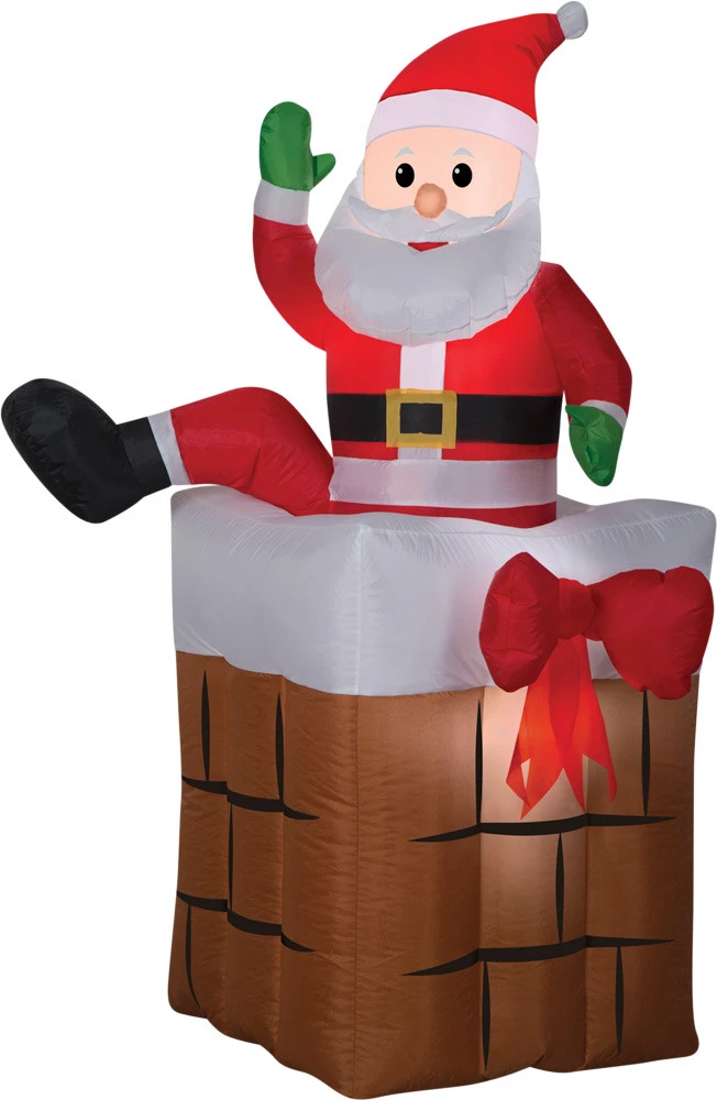 Animated Airblown Santa Climbing from Chimney will delight children in the whole neighborhood, reminding them that Santa will be doing just that on Christmas Eve! Airblown gives your decor maximum impact with minimum effort and it comes with everything you need for quick and easy set-up. You just stake it down and plug it in. Lights up with clear LED lights Self-inflates in seconds Deflates for easy storage Made of Fabric,70%; Plastic,20%; Metal,10%. Measures approximately 60 inches tall, 30 inches wide, and 37 inches deepc