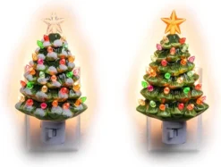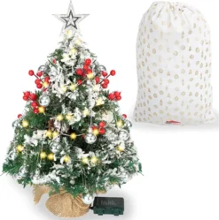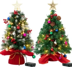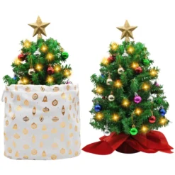 2pcs Artificial Mini Prelit Tabletop Christmas Tree Set 20in
