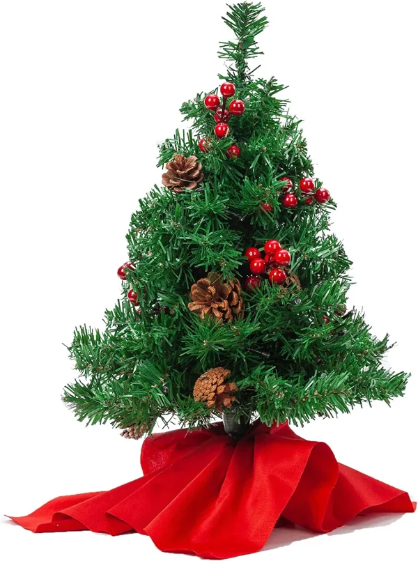 • With pine cones and holly berries ornaments, this desk Christmas tree looks classic and realistic. The warm white LED string lights make the tree even more beautiful and bring your home and office more Christmas atmosphere